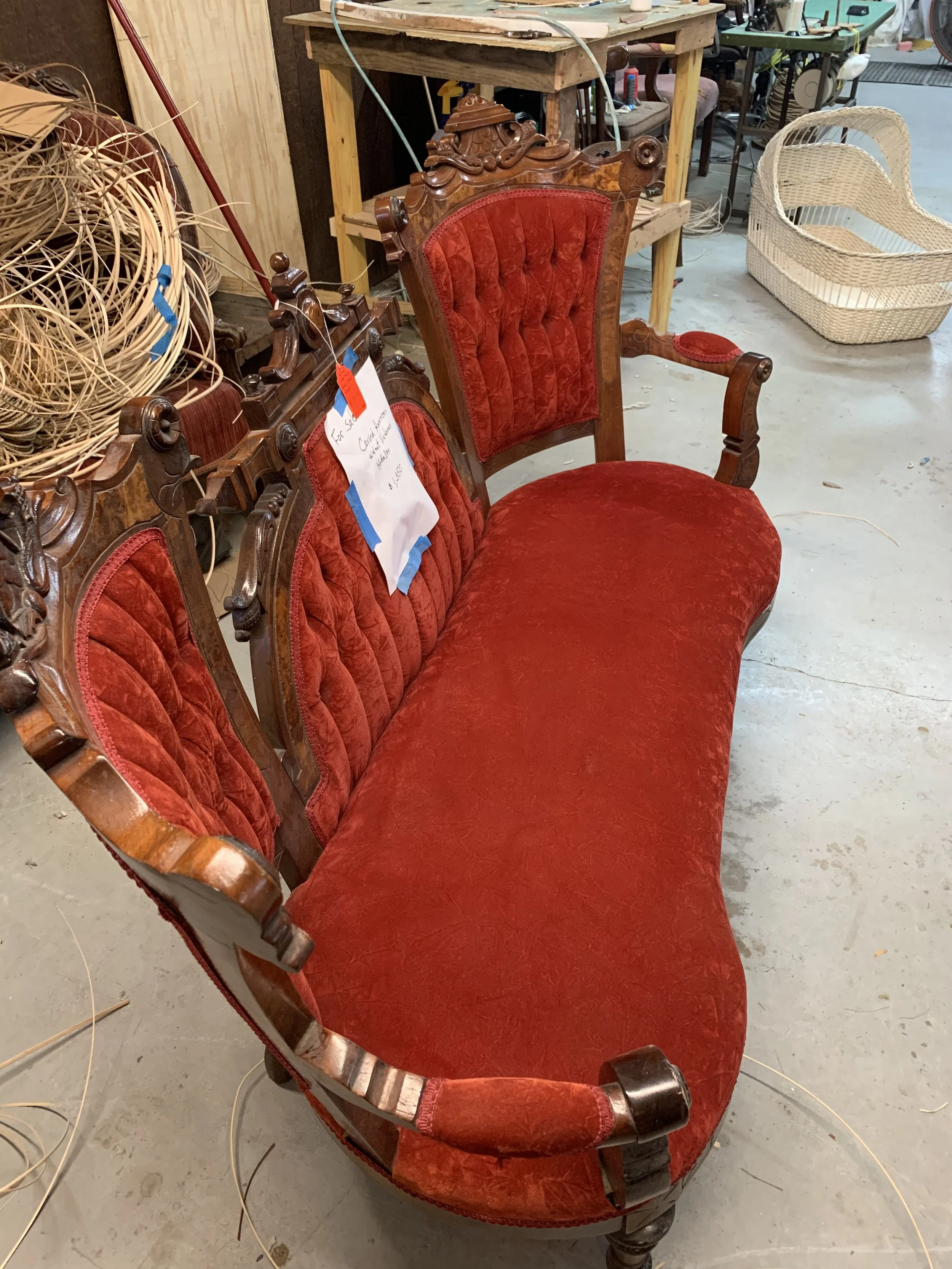 Categories: All tables chairs Sofas/couches All / tables Antique Victorian walnut loveseat sofa $1,350.00